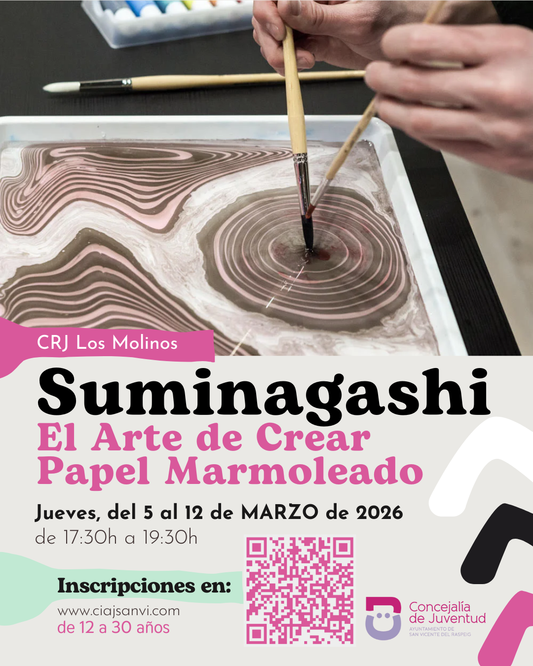 Descubre la magia del Suminagashi, una técnica japonesa milenaria para crear papel marmoleado, en un taller pensado para jóvenes de 12 a 30 años que quieren explorar la creatividad y el arte de manera única.